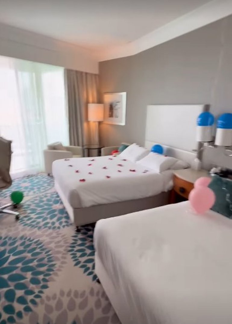 Гогу и њеног наследника при доласку у хотелску собу сачекало их је изненађење са украсима и балонима.