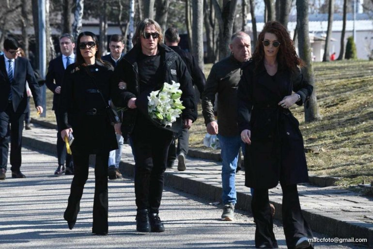 Супруга Сузана Јовановић са децом, Александром и Данијелом Поповићем, као и кумом, певачем Дејаном Ћирковићем Ћиром, је у капели на бежанијском гробљу примала саучешћа.
