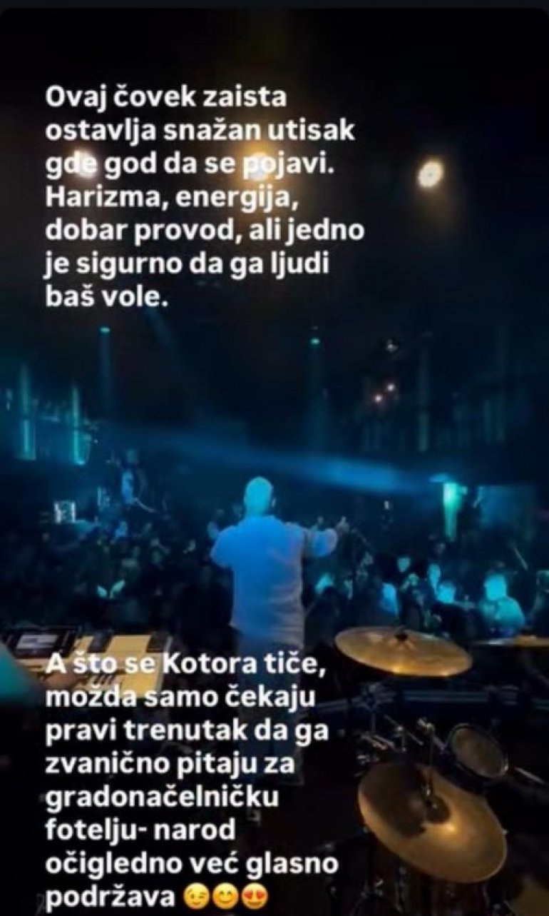 - Морам да признам да су ме баш насмејали. Немам никаквих политичких амбиција, али јасно ми је да је ово била једна од најлепших слика лета, баш из Котора. Да скратим причу, од политике нема ништа. Завршавам летњу турнеју наступом где је нажалост, доста људи остало без карте.