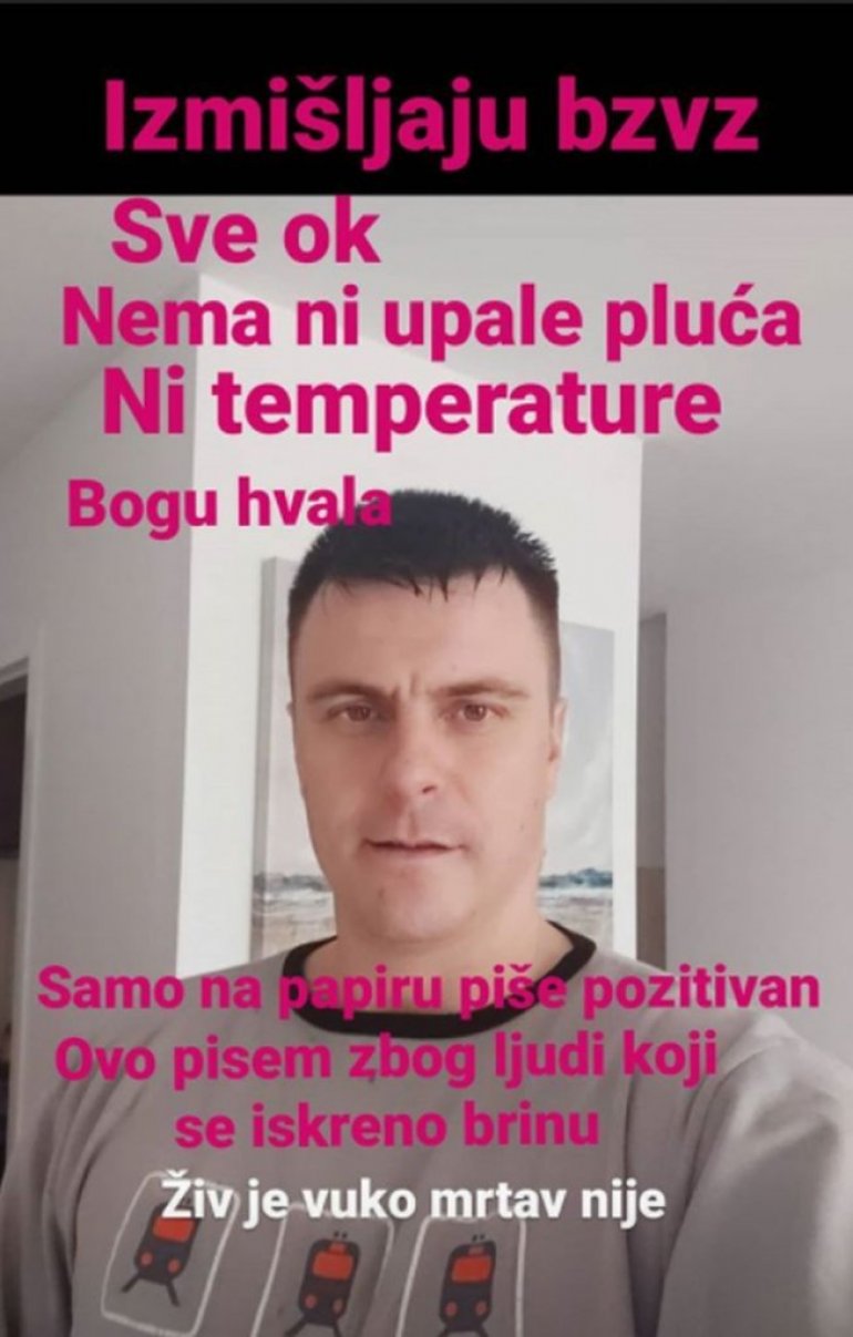 - Све је океј, нема ни упале плућа ни температуре, Богу хвала. Само на папиру пише позитиван - написао је Вук и додао: