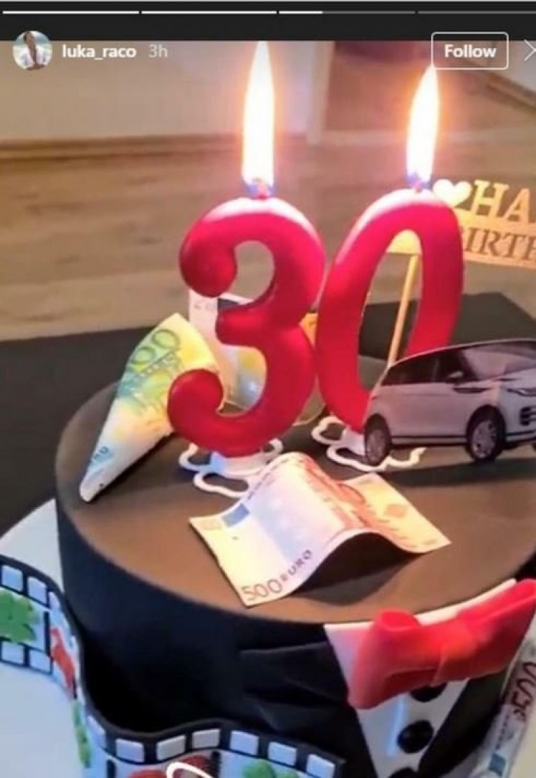 Наиме, Лука је рођендан обележио уз торту занимљивог изгледа, са детаљима у виду луксузног аутомобила, новца, а ту су биле и црвене свећице са бројем 30.