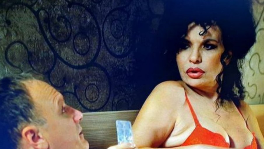 Позната глумица имала је провокативну сцену са колегом Славишом Чуровићем, а том приликом лежала је у кревету прекривена чаршавом у црвеном, чипкастом вешу.