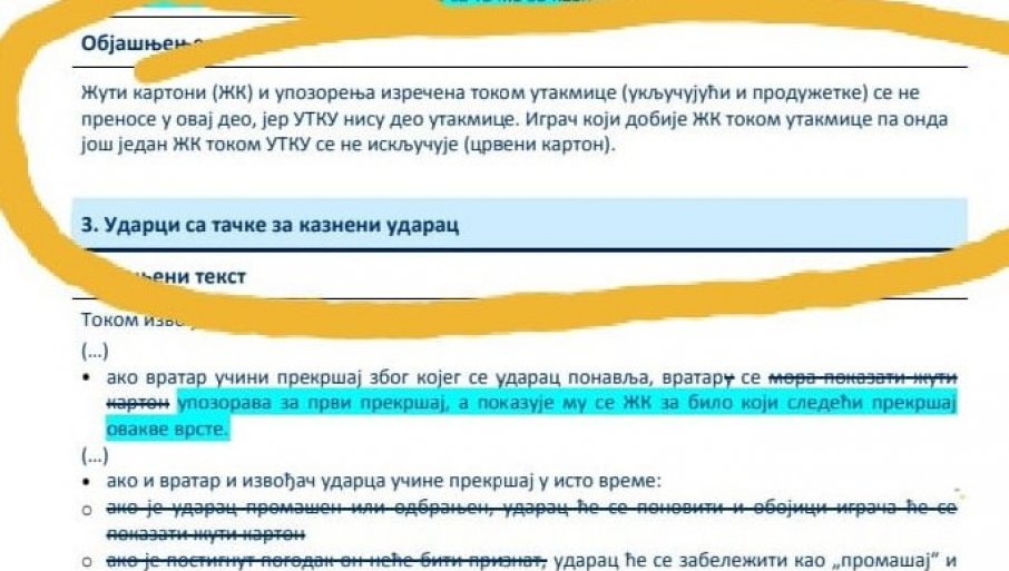 Морао би да добије два жута картона приликом шутирања пенала да не би даље могао да их брани, што значи да се не сабирају онај из игре и онај добијен приликом извођења једанаестераца“.