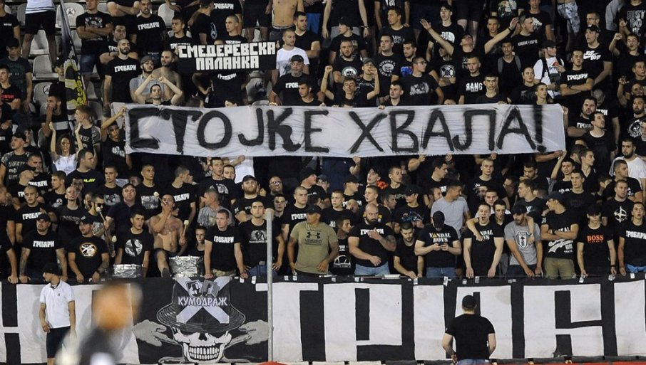 Навијачи су развили транспарент и уз песму захвалили доскорашњем голману Владимиру Стојковићу на свему што је учинио за клуб.