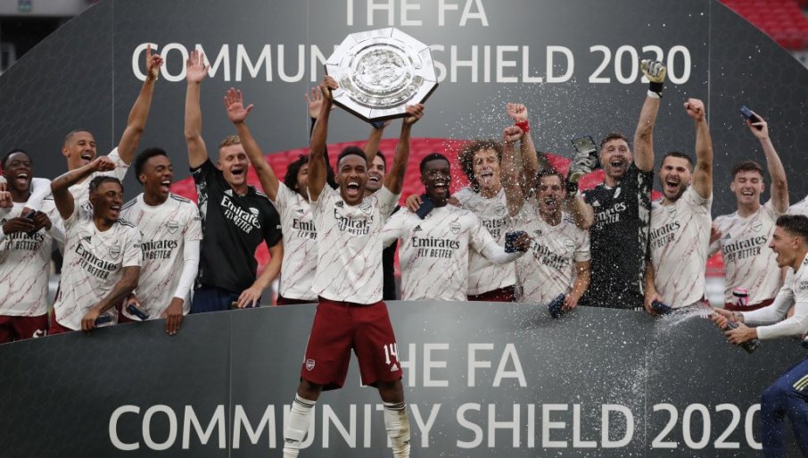 Иако је Влаховић, нешто раније ове јесени, одбио да у елитном енглеском такмичењу игра за Арсенал, управо тамо га "шаљу" и Коријере дело спорт и британски таблоид "Сан", а сада и навијачи "тобџија", уверени да баш Србин стиже да их спасе најновијих мука. Јер, данас је Арсенал други пут у низу свог капитена казнио одузимањем капитенске траке. То ново "проклетство тобџија" започело је када Алабанац који наступа за швајцарску репрезентацију Гранит Џака, због бацања дреса, пљувања ка навијачима и свађом са њима, није више био миљеник ни присталица клуба, ни управе, а ни стручног штаба која га је сменила с позиције капитена. Траку је тада преузео нападач Пјер-Емерик Обамејанг, а сада је и њему она одузета. Као званично објашњење клуба, "у питању је последица кршења дисципилине", а портал "Атлетик" сазнаје да је Обамејанг закаснио са доласком у клуб после дозвољеног приватног путовања у иностранство. Пјер Емерик Обамејанг са играчима Арсенала после освајања Комјунити шилда / Фото:Tanjug/AP