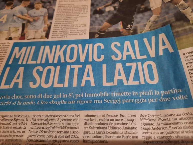 Посебно дневни лист "Ил Месађеро" даје простор јучерашњој утакмици и мајсторији нашег репрезентативца Сергеја Милинковић-Савића, детаљно описује његову маестралну игру. Вештина Србина на "Олимпику" са два гола донела је изједначење Лацију.