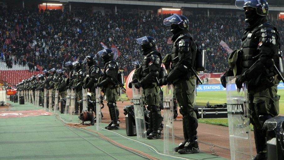 17.42 - На стадиону је, заиста, велики број навијача, први пут од избијања епидемије се игра један дерби пред толиком публиком. А ту су и снаге за одржавање реда. Надамо се да неће имати тежак посао, односно да ће све протећи мирно и како доликује највећем фудбалском мечу који Србија има.