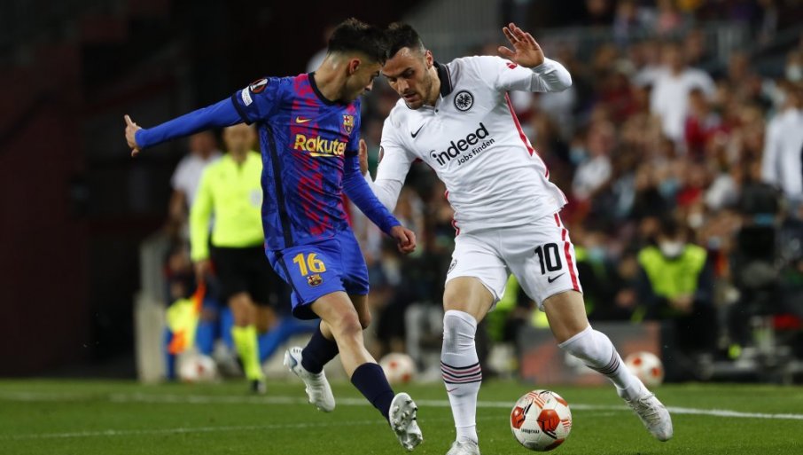 БАРСЕЛОНА игра против Ајнтрахта у реванш мечу четвртфинала Лиге Европе, а српски фудбалер Филип Костић одлично је започео меч.