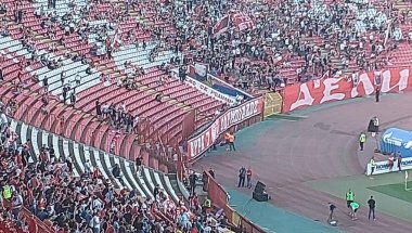 На огради испод северне трибине, на којој се окупљају најватренији навијачи Звезде, налазила се и велика застава грчких тифоза, а онда се стадионом "Рајко Митић" заорила песма навијача Олимпијакоса.