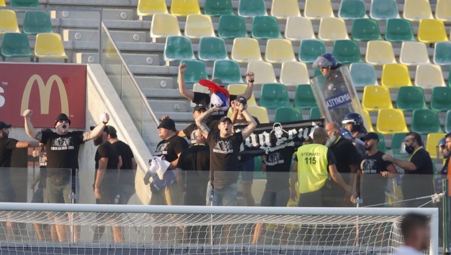 ОВАКО СУ "ГРОБАРИ" ИЗБАЧЕНИ СА СТАДИОНА У ЛАРНАКИ: Кипарска полиција без много милости за навијаче Партизана (ФОТО)