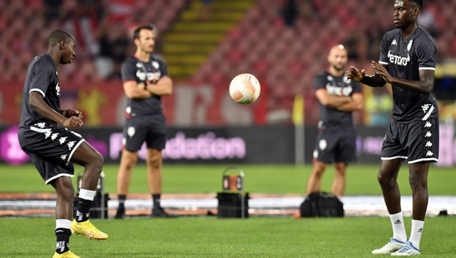 Фудбалери Монака изашли су на загревање на стадион "Рајко Митић".