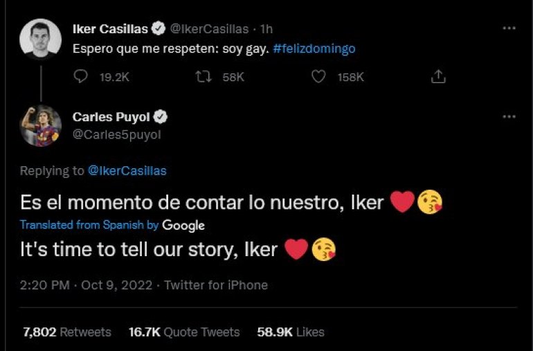 - Икер Касиљас је направио револуцију на друштвеним мрежама када је на Твитеру објавио изненађујућу поруку која никог није оставила индиферентног. Било јео то у 14.10 и истог часа кренули су пристижу коментари свих могућих врста. Док твит није био обрисан (Пујолов, у време објаве овог текста, у 16 часова, још увек није, прим. прев.).