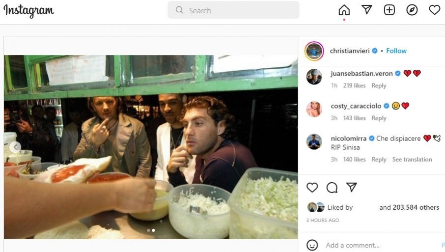 Тај чувени "кадар" је легендарни италијански шпиц поделио на Инстаграму, опраштајући се од бившег саиграча, српског аса који је преминуо у 53. години.