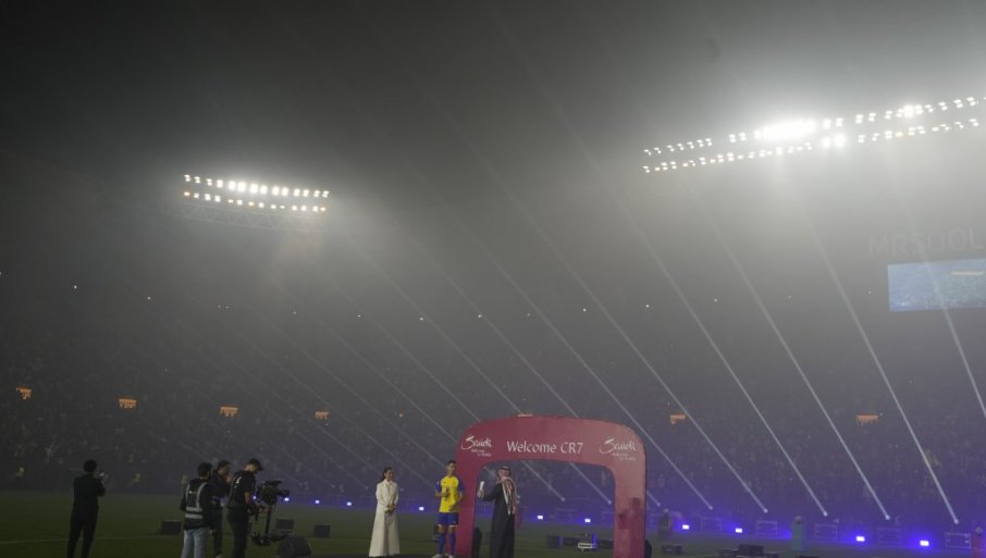 ЛАСЕРИ, ПИРОТЕХНИКА, КРЦАТЕ ТРИБИНЕ: Кристијано Роналдо је овако представљен у Саудијској Арабији (ФОТО)