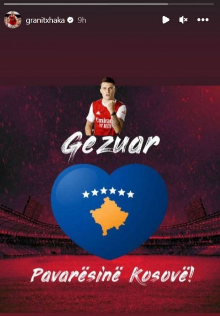 Џака, познат по томе што и на фудбалском терену показује своју припадност и политичке ставове, огласио се на друштвеним мрежама и уз заставу тзв. Косова у облику срца, написао: