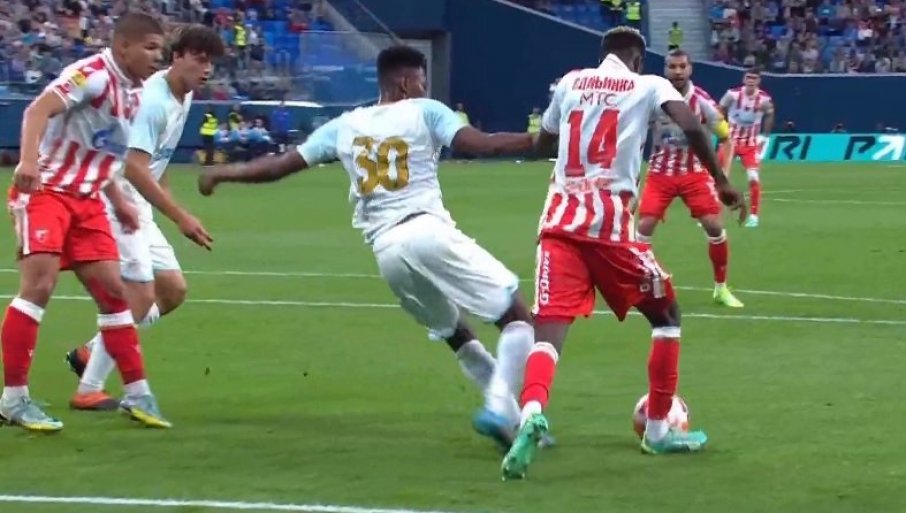 29' - Пенал за Звезду! Касијера је лоше уклизао и с леђа фаулирао Олајинку у казненом простору Зенита