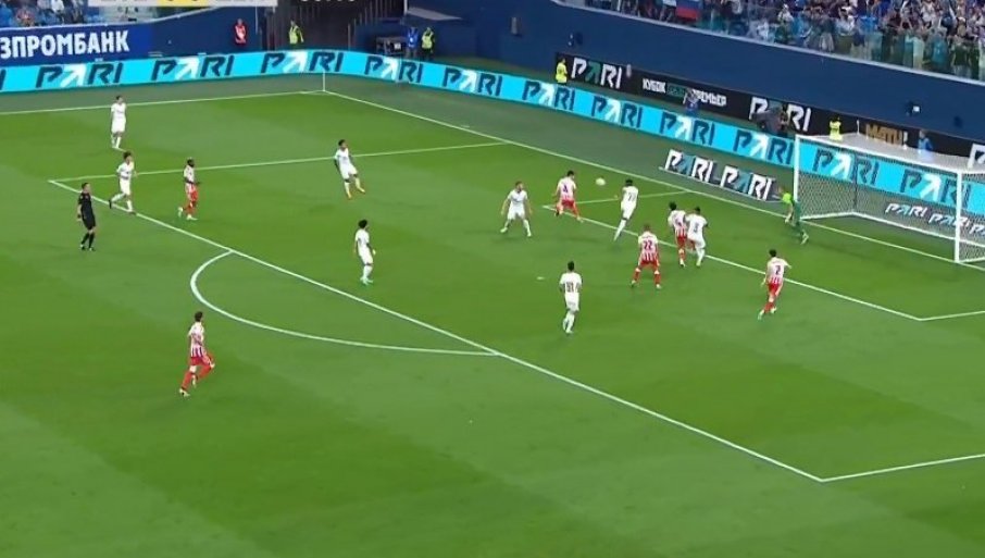 Иванић постиже гол на утакмици Зенит - Црвена звезда / Screenshot / TV Arena sport