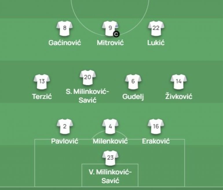 19.45 - Номинално, шест је везних играча у селекцији Србије (осим голмана, дефанзивног трија Ераковић - Миленковић - Павловић, те нападача Митровића), па ће бити занимљиво видети шта је то Пикси припремио Мађарима. Да ли ће само Гаћиновић бити истурена подршка новом капитену, или ће он деловати са једне, а Живковић са друге крилне позиције, или можда нешто треће... Но, свакако то неће бити овако како је сајт УЕФА ставио, са Сашом Лукићем, "задњим везним", као чланом "нападчког трилинга" Србије: