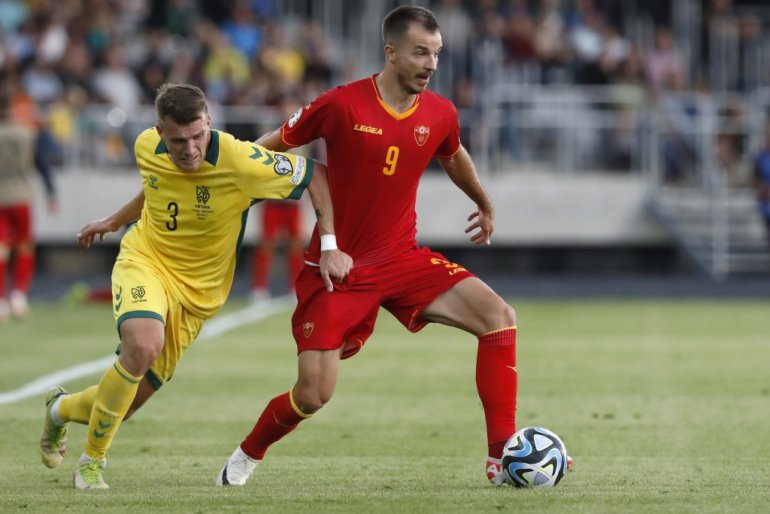 Стефан Мугоша (десно) на мечу Литванија - Црна Гора у квалификацијама за ЕУРО 2024 / FOTO: Tanjug/AP