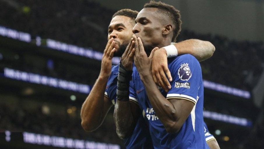 Рис Џејмс и Николас Џексон славе други гол Челсија на невероватној утакмици с Тотенхемом / FOTO: Tanjug/AP