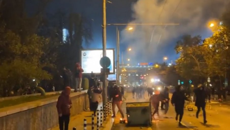 У тренуцима када је меч почињао, на протестима је запаљено неколико контејнера и десили су се нови напади на полицију.