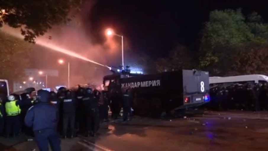 Водени топ бугарске жандармерије интервенише током протеста навијача / Screenshot / БТВ