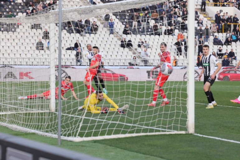 54' - Добар напад црно-белих и велика шанса за Самеда Баждара. Северина је видео да утрчава његов саиграч, проиграо га је, али је његов ударац одлично зауставио Гордић.