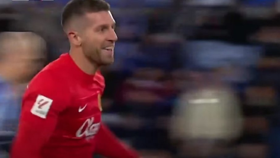 Матија Настасић слави гол за Мајорку на гостовању Алавесу / Foto: Printskrin/Arena sport