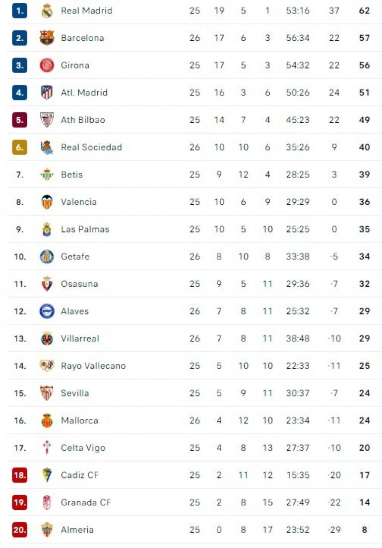 Табела шпанске Ла Лиге: