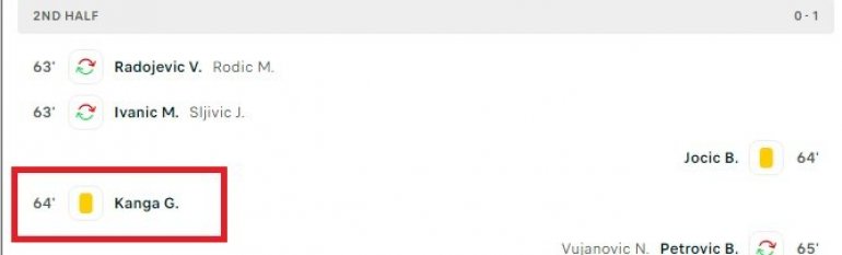 Канга је други картон добио 17. фебруара 2024. на утамици са Новим Пазаром.