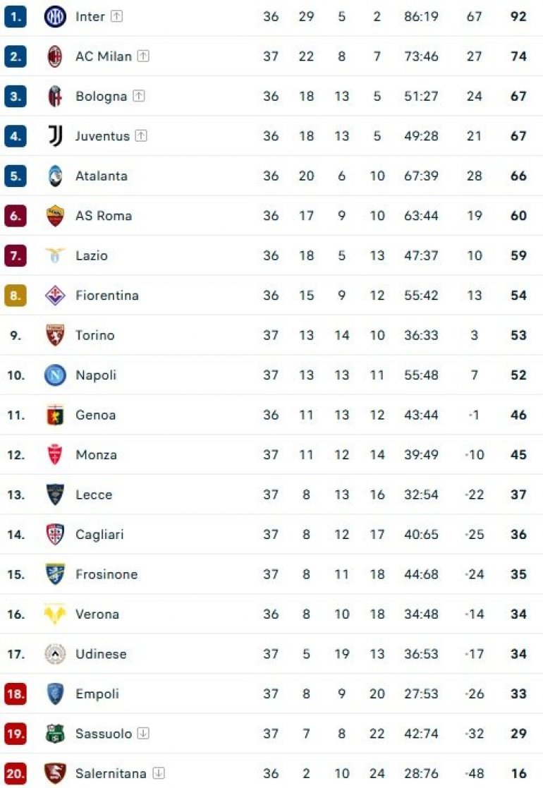 Удинезе у последњем колу гостује Фрозинонеу, док ће Емполи дочекати Рому.