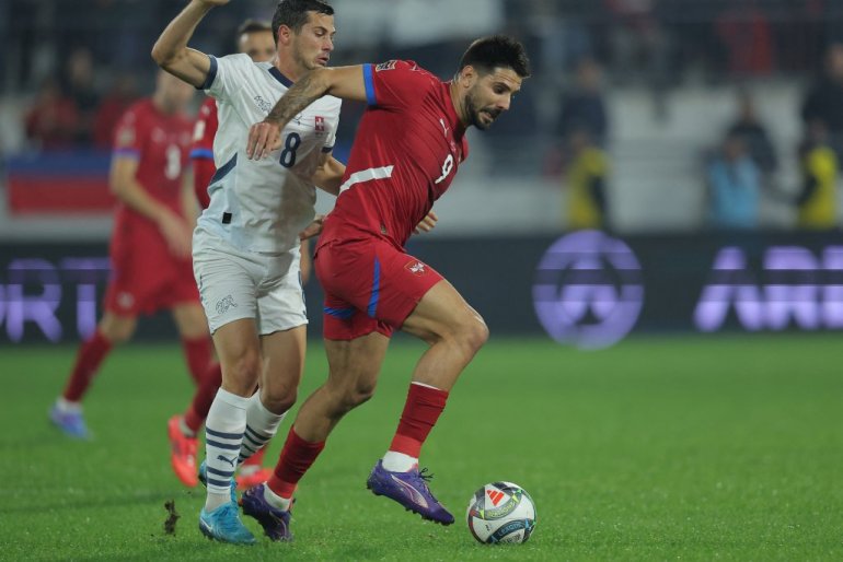 26' - Србија највише прети по левој страни. Бирманчевић је послео добру лопту у казнени простор, мало је фалило да до ње дође Александар Митровић. Ипак, за мало је остао кратак и лопту је покупио Кобел.