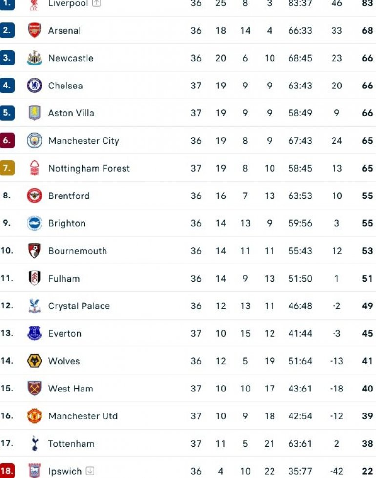 Нотингем Форест сад има 65 бодова и налази се на седмом месту. У последњем колу дочекује четвртопласирани Челси који има 66 и то ће бити директан окршај за пласман у Лигу шампиона.