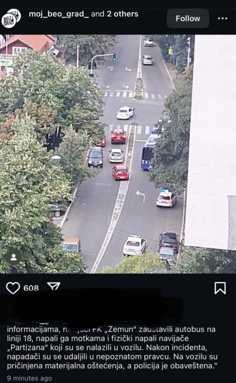 На друштвеним мрежама, на популарним налозима који прате дешавања на градским улицама, минулих дана дељена су обавештења да су у Земуну "навијачи зауставили аутобус" видевши да унутра има присталица Партизана, па утрчали са палицама и, тек после свог пира, побегли одатле.