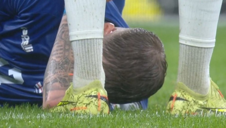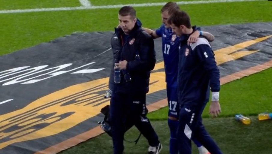 36' - Излази Илић на својим ногама, али се држи за рамена колега из репрезентације... Није добро...