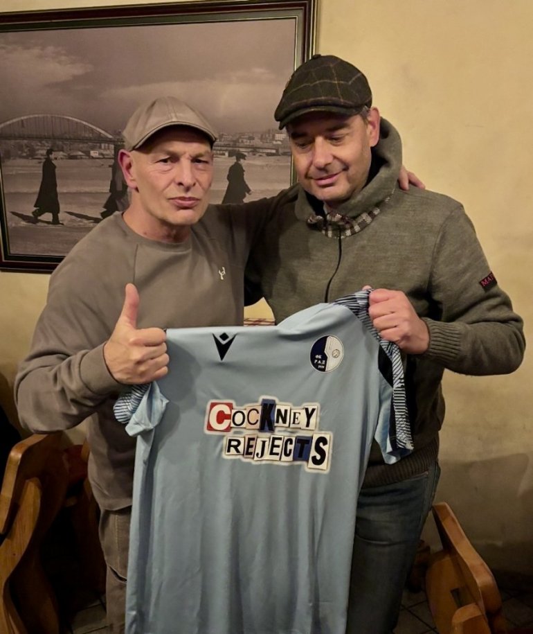 Одушевљени доласком популарних Енглеза, представници београдског Рада су “Кокнијима” поклонили дрес свога клуба са одштампаним називом британске групе.