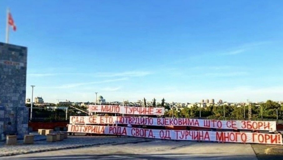 На огради испод Северне трибине стадиона “Рајко Митић”, на платоу код тенка и минобацача, осванула је, црвеном бојом, исписана парола: Мило Турчине. Сад се ето потврдило, вековима што се збори. Потурица рода свога, од Турчина много гори.