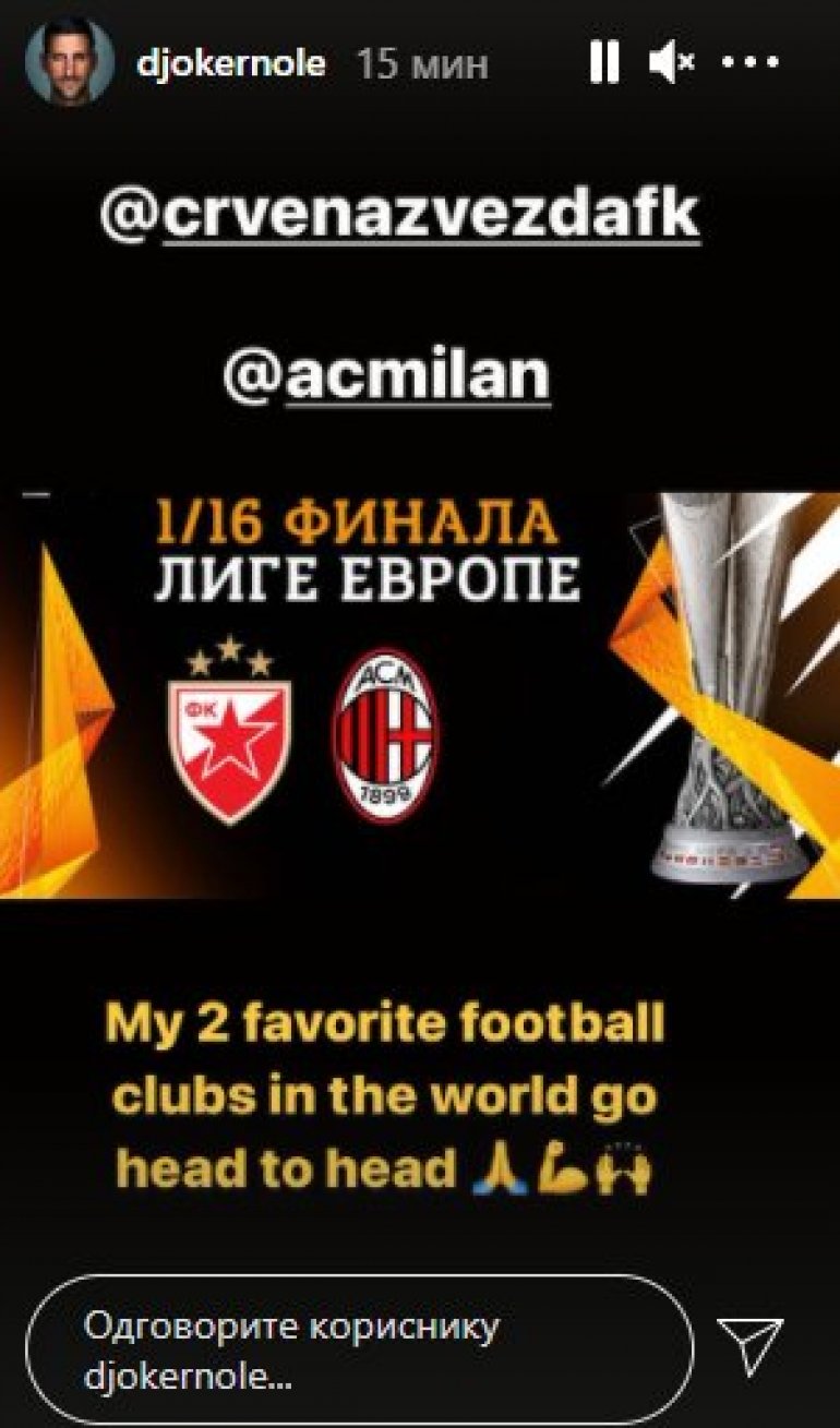 "Два моја омиљена фудбалска клуба се међусобно састају", написао је Ђоковић о том мечу.