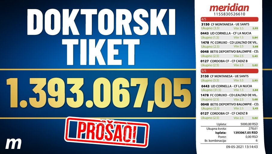 Пред вама је тикет лепотица за све љубитеље системског клађења. Овај мајстор је искомбиновао шпанску трећу лигу, системе и клађење на број голова и - узео 1.393.067,05 ДИНАРА.
