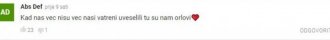 - 'Кад нас већ нису наши ватрени увеселили ту су нам приредили орлови', 'Ово Срби се дошли само брукат на Свјетско, супер лоши + сви ружни ко' лопови', 'Белосвецки олош забраниа орловима да имају један шут у оквир гола. Докле бре', 'Толико од најављиваних финалиста СП', 'Кажу орлови а оно обичне вране. Требало је да буде бар 6 комада у мрежи опачара'...