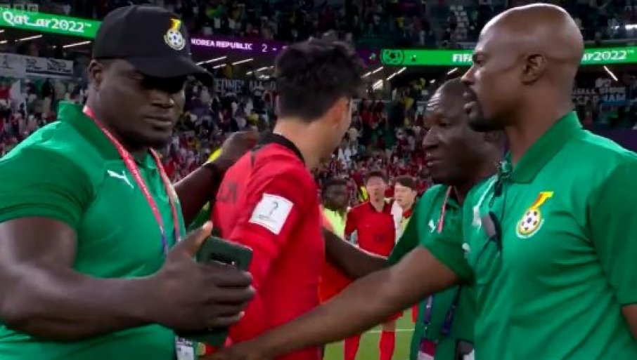 Ганац није марио за то како се Хонг Мин Сон осећа, није имао обзира за тренутак, само је пришао и овековечио сусрет са славним фудбалером кога су у том тренутку тешила још двојица тренера из стручног штаба Гане.