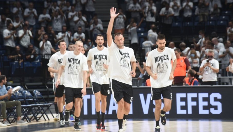 ОПРОШТАЈНА утакмица Новице Величковића у којој се његов Партизан састаје са шампионом вропе Ефесом, почела је минутом ћутања због смрти великана Душана Дуде Ивковића који нас је напустио јутрос у Београду.