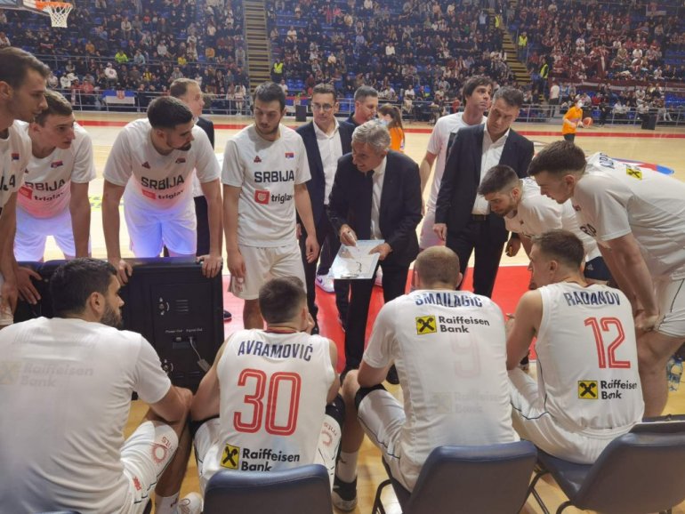 Светислав Пешић даје инструкције играчима Србије/КСС