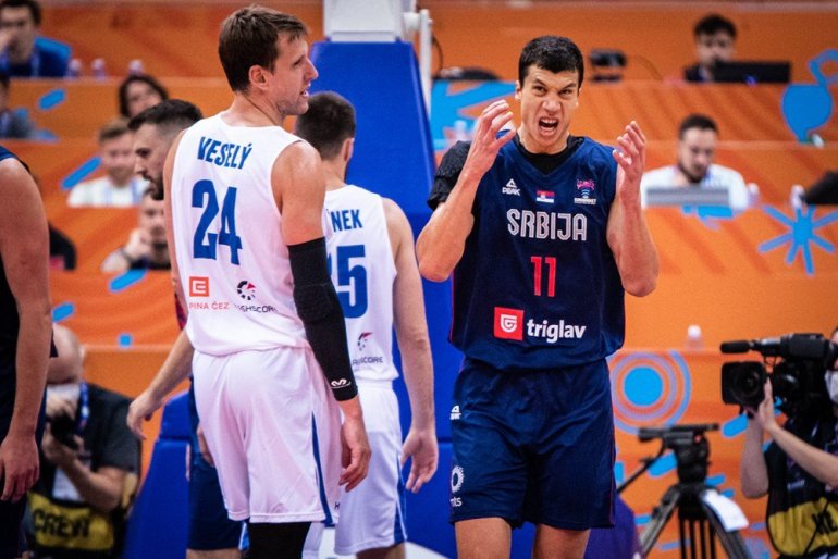 Против Чеха је стартна постава Мицић, Маринковић, Лучић, Калинић, Јокић имала испрва прилично проблема да пронађе прави одоговор на врло покретљиву одбрану ривала, али је "мучење" трајало само пет минута. Тада је, уз одличну подршку колега у одбрани, Никола Јокић некако за тили час на другој страни терена показао зашто је МВП најјаче лиге на свету - убацио је 11 поена, уз четири скока, асистенцију и "крађу", помогавши Србији да оде на први обавезни предах са 20:15. А онда је почео колективни шоу "орлова", час страшне кошарке која би могла да уплаши и многе друге екипе на Европском првенству, укључујући и оне много јаче од Чеха.