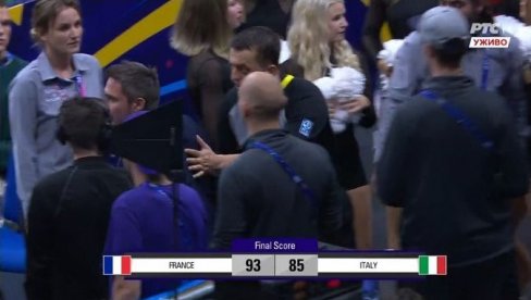 СЕЛЕКТОР Ђанмарко Поцеко који је грлио и љубио све српске кошаркаше након што је његов тим савладао "орлове", након елиминације помахнитало је желео да се обрати српском судији.