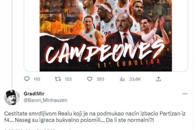 ПАРТИЗАН ЧЕСТИТАО РЕАЛУ, "ГРОБАРИ" НЕ МОГУ ДА ВЕРУЈУ! Бес навијача због начина на који су црно-бели реаговали после финала Евролиге