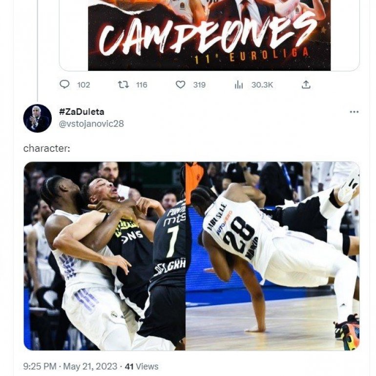- Честитамо Реалу на освајању Евролиге! Показалите сте невероватно карактер и дали сте пример свима нама колико далеко неки тим може да иде, ако верују до самог краја.