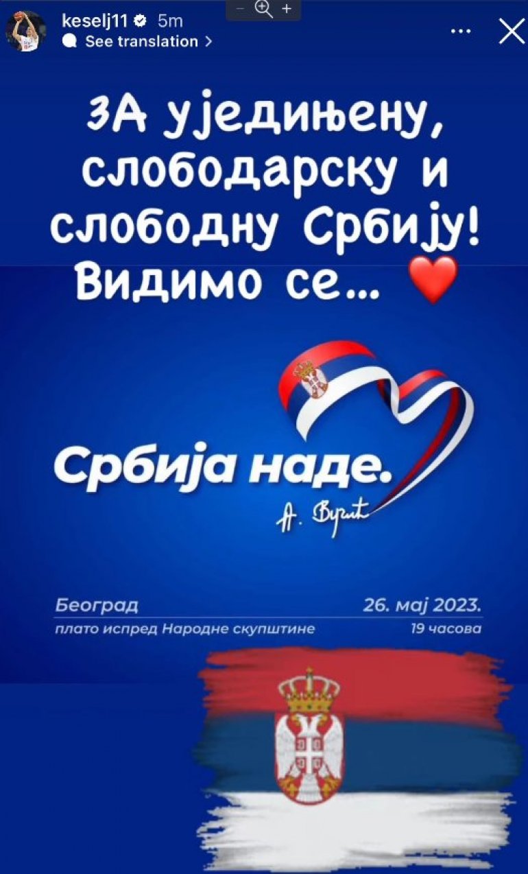 - За уједињену, слободарску и слободну Србију! Видимо се... Србија наде - објавио је Кешељ на свом Инстаграм налогу.
