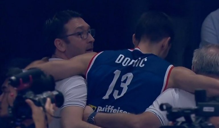 Наиме, меч тек што је кренуо, а Огњен Добрић се повредио. Он је искренуо зглоб. Остао је неко време да лежи на паркету. Потом је уз помоћ доктора наше репрезентација изнет са терена.