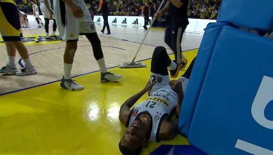 29' - Изнудио је фаул Доужера Најџер Хејс-Дејвис, а онда незгодно доскочио и ухватио се за препону. Легао је на паркет... Али, изгледа да ће моћи да настави да игра.